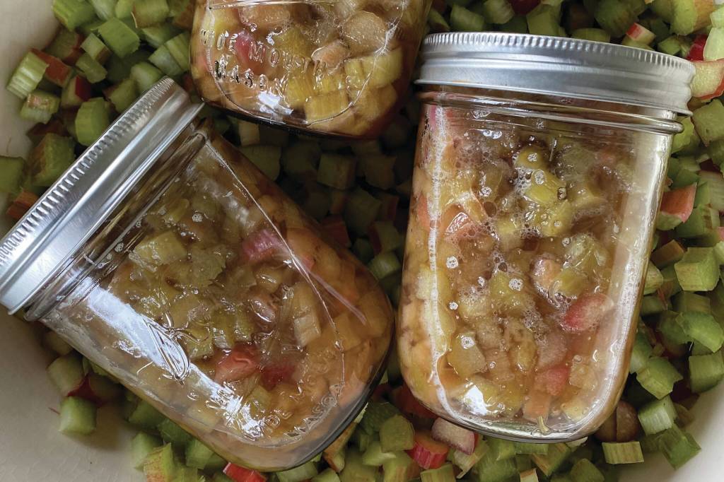 Rhubarb is preserved in jars. (Photo by Tressa Dale/Peninsula Clarion)