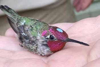 Kate McLaughlin, with the Alaska Hummingbird Project, lives in Cordova, and she had just caught an adult male with our band on it.