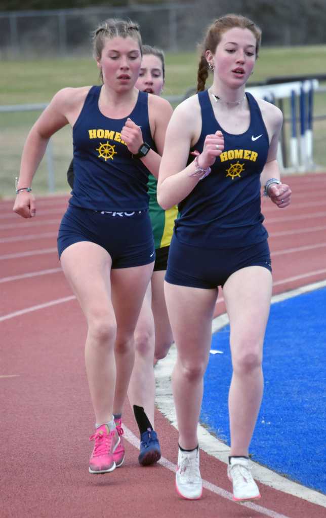 400 relay — 1. Homer (Jaelynn Kennon, Maddy Miotke, Immi Im, Gracie Miotke), 52.96; 2. Soldotna, 54.82; 3. Seward, 55.49; 4. Soldotna, 56.86.