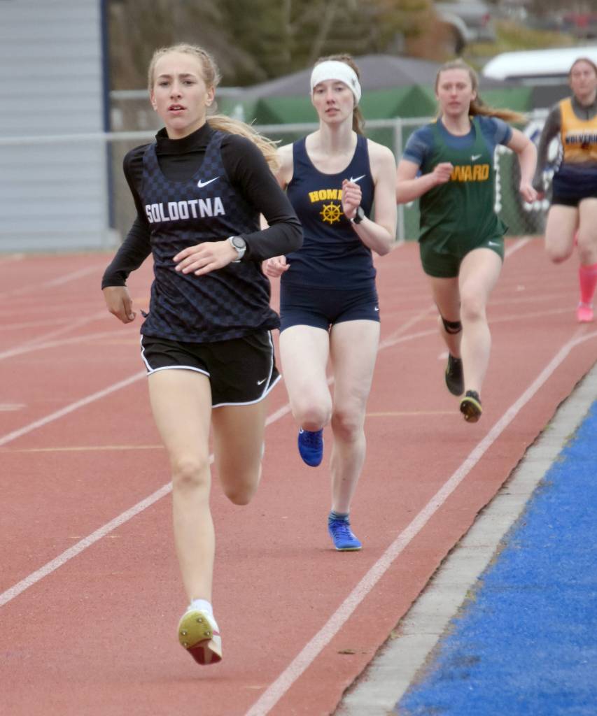 1,600 relay — 1. Soldotna (Shiloh Zichko, Sasha Brott, Anaulie Sedivy, Annie Burns), 4:26.76; 2. Soldotna, 4:55.92.