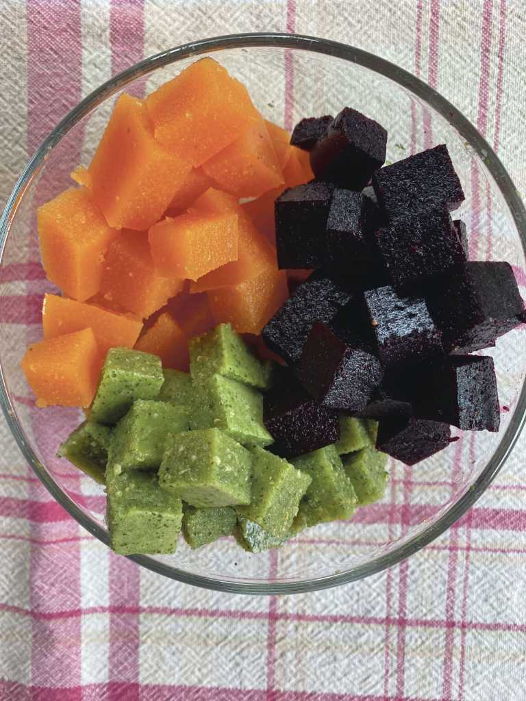 I made three flavors: blueberry and honey, carrot and nectarine, and spinach and green grape (trust me, they won’t taste the spinach).