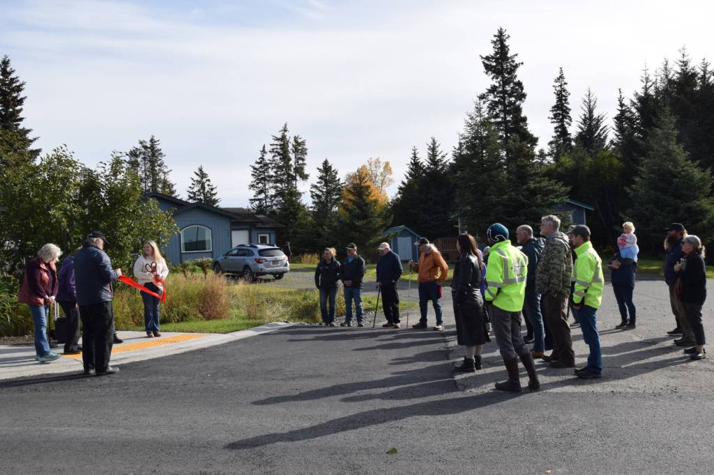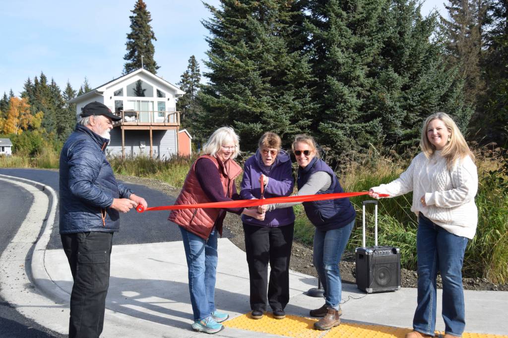 City representatives and Homer community members celebrated the construction of a new sidewalk spanning the length of Ben Walters Lane with a ribbon-cutting ceremony on Monday.