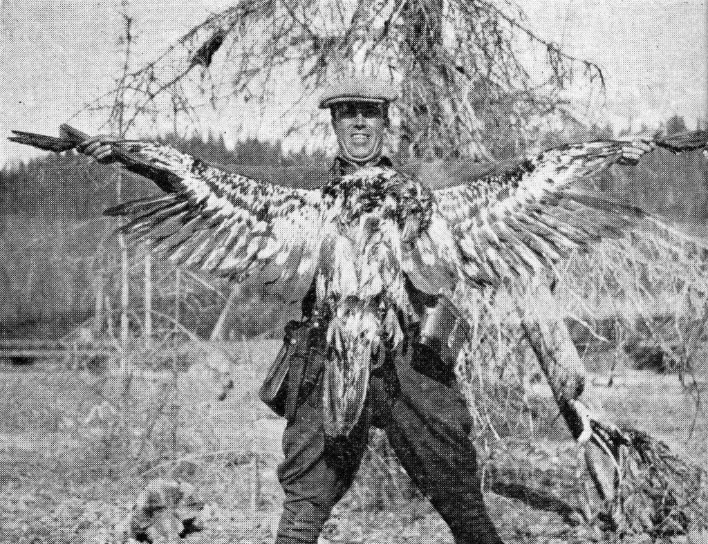 According to the caption beneath the photo, the Territory of Alaska was paying a bounty of $20 apiece on wolves and coyotes. At market, the pelts were worth an additional $5, making Nutter’s total haul that winter, for coyotes only, at least a thousand dollars — roughly the equivalent of $22,400 in purchasing power today.