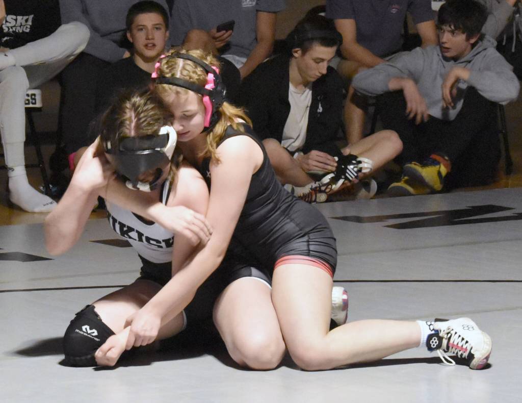 Despite bringing five varsity wrestlers, the rest of the team was able to collect dual-meet wins in Nikiski, with Alcorta winning her second career match.