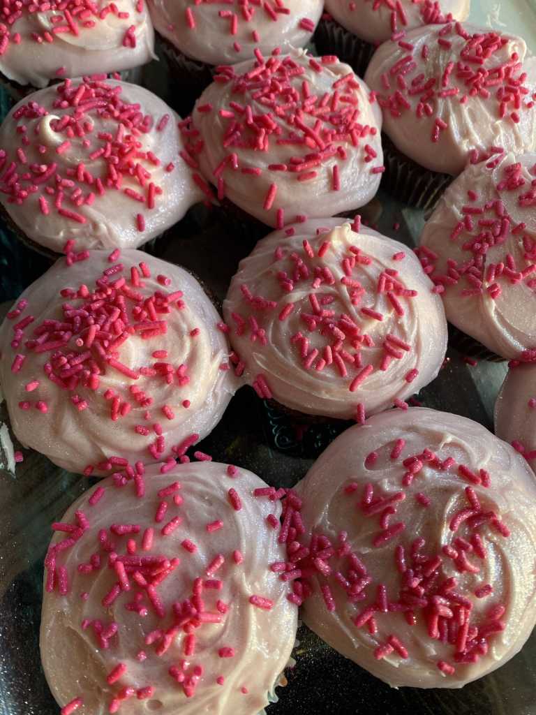 We traveled up to the valley to attend her birthday party this past weekend. When I asked her what flavor cupcakes she would like she said, “chocolate, chocolate, chocolate … with pink frosting and pink sprinkles.” Lucky for my little girl, her Auntie knows a recipe that would satisfy even the most hardcore chocoholic.