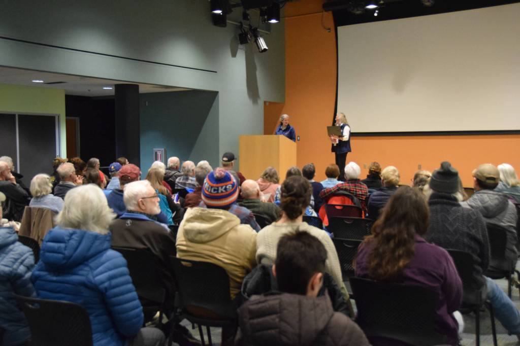 The main conference room in the Alaska Maritime National Wildlife Refuge was filled with curious and concerned community members on Tuesday, Feb. 18. Attendees in person were joined by nearly 200 additional online participants at watch parties and Zoom streams spread across Alaska. The subject of the evening was unfortunate yet riveting: the millions of common murres who died of starvation en masse between 2014-2016. The reason for their starvation? A mass marine heat wave known simply as “the Blob” that decimated their food system from multiple angles.