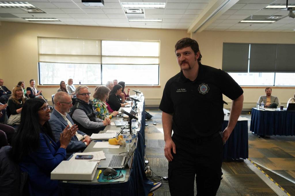 A group of KPC students, representing the paramedic and process technology degrees as well as the Kenai Peninsula Middle College School, were first to speak during the full board meeting Thursday afternoon.