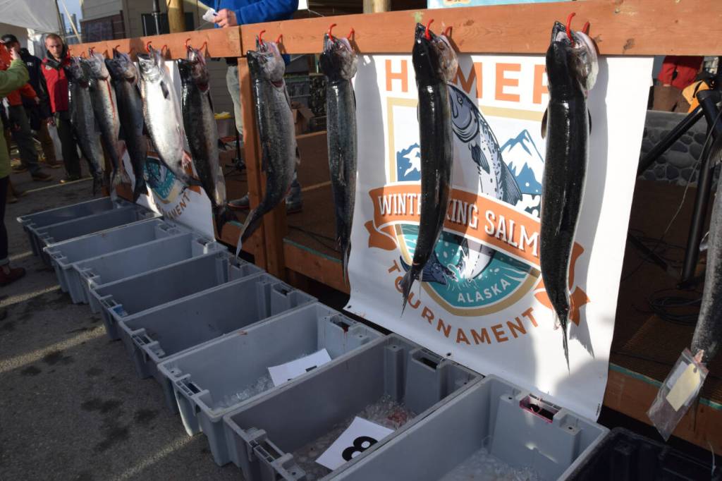 The Deep Water Dock on the Homer Spit was hopping Saturday afternoon during the 31st annual Winter King Salmon Tournament, with anglers coming off the water for weigh-in and community members enjoying the food trucks, beer garden and live music.