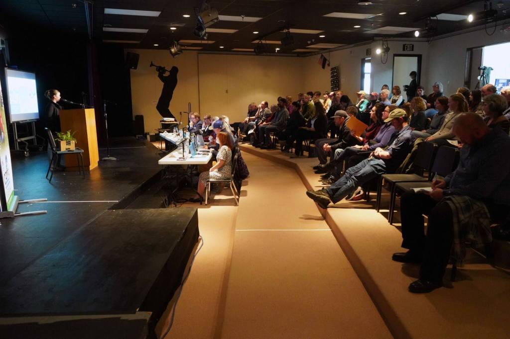Hannah Leatherman, of Seward, was among 12 finalists in this year’s competition who gathered in the Kenai Central High School Little Theater to present their ideas to a panel of judges. Many of this year’s projects were pulled from news headlines, tackling local issues like the use of road brine on winter roads and the failure of the Central Peninsula Landfill recycling baler. Others brought forward ideas to pull trash from the Kenai River, combat invasive insects, clean small oil spills, promote careers in firefighting and more.
