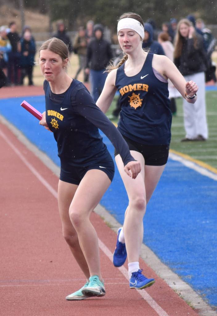 400 relay — 1. Soldotna (Brown, Hannevold, Uhlir, Piscoya), 51.94; 2. Homer, 52.73; 3. Colony, 54.80; 4. Soldotna, 55.07; 5. Kenai, 55.59; 6. Wasilla, 56.76.