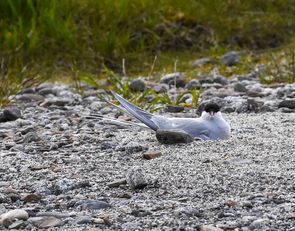 Breeding birds have a full black cap, short red legs and a red bill. This summer, they can be seen from a respectful distance at the glacier foraging by Mendenhall Lake and nesting in colonies.