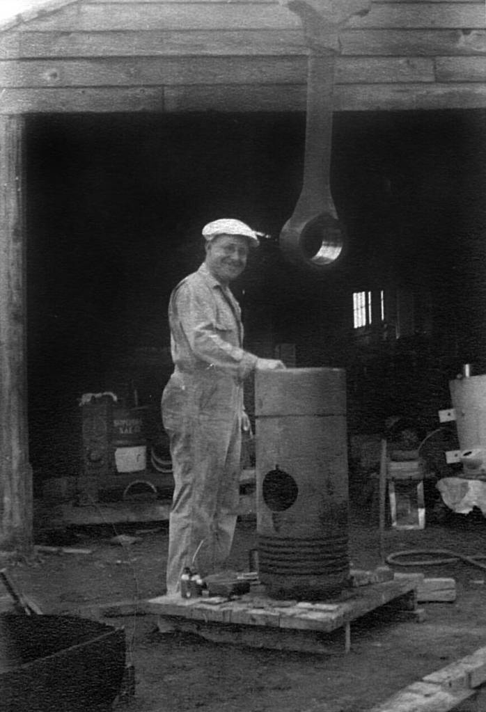 Starting after his first visit to Kenai in 1949, he acquired the property for his power plant and, with the help of the Anchorage linemen, used military-surplus equipment to auger holes for the treated poles that would hold the transmission lines they strung throughout the village.