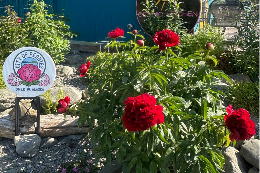 Find the self-guided peony garden tour map and updates to the schedule of events at the Homer Chamber of Commerce, Peony Celebration Headquarters, located at 201 Sterling Highway, and online at homeralaska.org/events/homer-peony-celebration/. The Chamber is open weekdays from 9 a.m. to 5 p.m. and is closed on weekends.