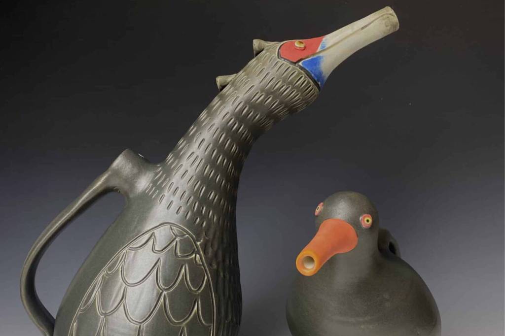 Paintings by Lynn Larsen and ceramics by Jenny Nakao