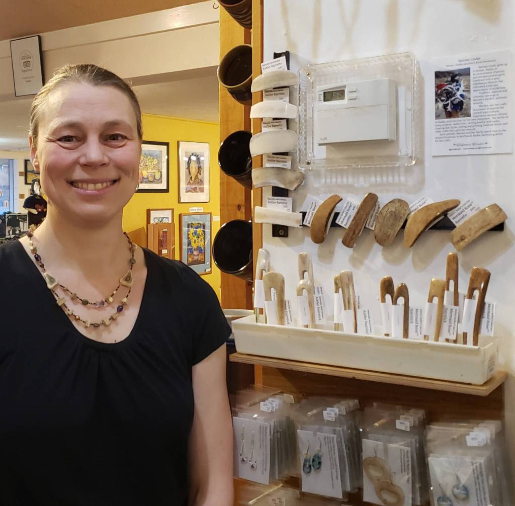 While Linder has exhibited locally at galleries including Fireweed Gallery and Inua, she prefers to sell her pieces outright. An art entrepreneur, she is experienced in product development and crafting, marketing, web store design and retail operations and has through the years wholesaled her work around the state and through her previous businesses, Local Showcase, HandsofAlaska and Alaska’s Best Wholesale Show.
