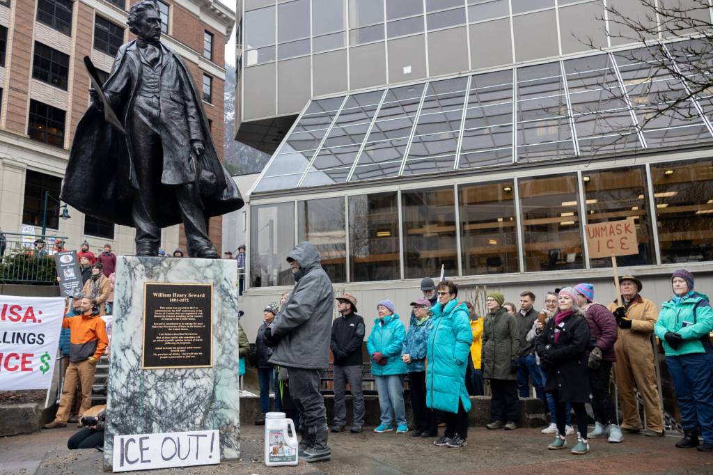 Over 200 people gathered at the Dimond Courthouse plaza last Thursday to speak out against Immigration and Customs Enforcement, mirroring similar protests around the country following two killings by federal agents in Minneapolis. The hour-long rally was peaceful, with attendees singing together, holding bags and boxes of salt and chanting, “Melt ICE.”