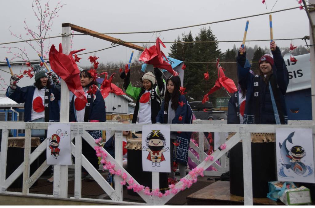 This year’s “Snow Much Love” Winter Carnival Parade might have lacked the snow, but definitely didn’t fall short on the love. Community members gathered along Pioneer Avenue as usual, despite the rain, to watch parade participants pass by and give short performances below the judges’ station at Bay Realty.
