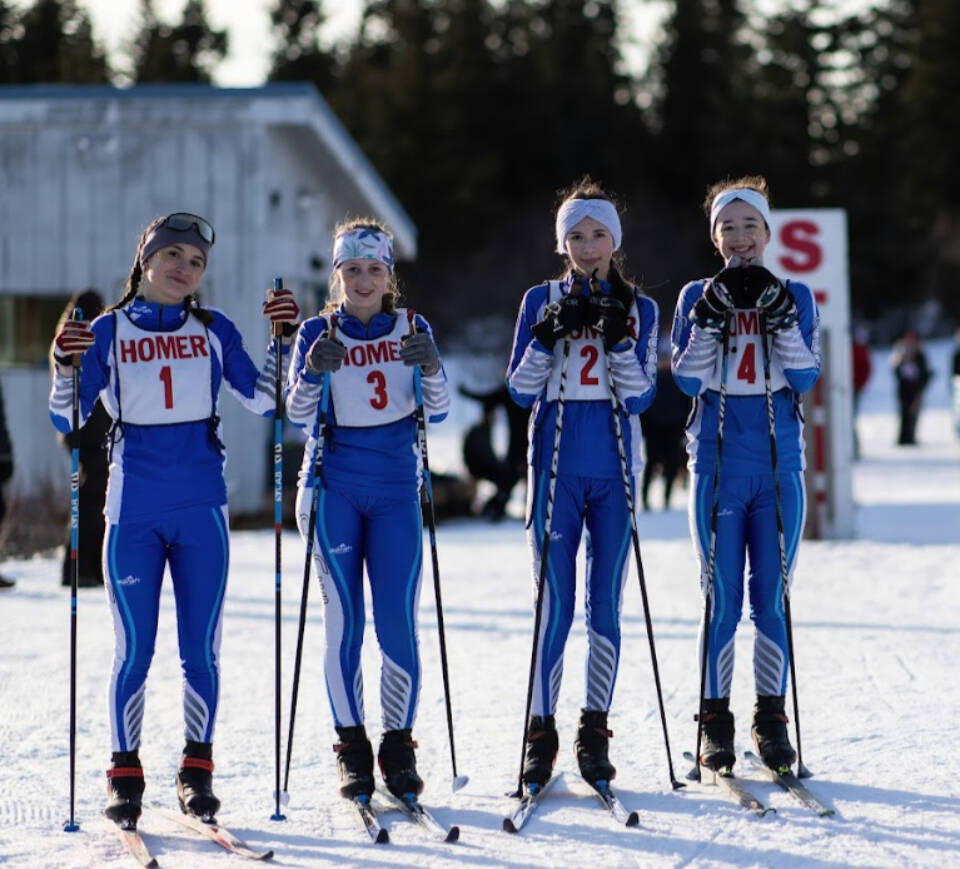 Homer Middle School hosted the Kenai Peninsula Borough championship freestyle race at Lookout Mountain Ski Trails on Feb. 27, competing against Skyview Middle School, Kenai Middle, Chapman School and Cook Inlet Academy. The Homer girls team took first place, and the boys team took second by time.