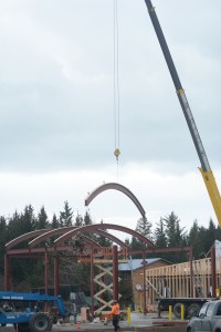 Workers on Monday raised the beams for Grace Ridge Brewery, a new brewery under construction on Ocean Drive.…