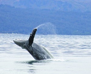 Whales swim through Kachemak Bay on Wednesday morning. Longtime residents report more humpback and Minke whales have stayed…