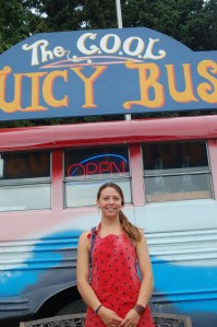 Sage Dance-Wright stands by the Cool Juicy Bus on Monday afternoon.