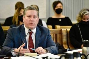 Chair of the Alaska Permanent Fund Corporation Board of Trustees Craig Richards answers questions from the bicameral Legislative Budget and Audit Committee on Tuesday, Jan. 17, 2022. The committee called Richards and other members of the board to answer questions about the December firing of APFC CEO Angela Rodell, who has claimed her termination was politically motivated. (Peter Segall / Juneau Empire)