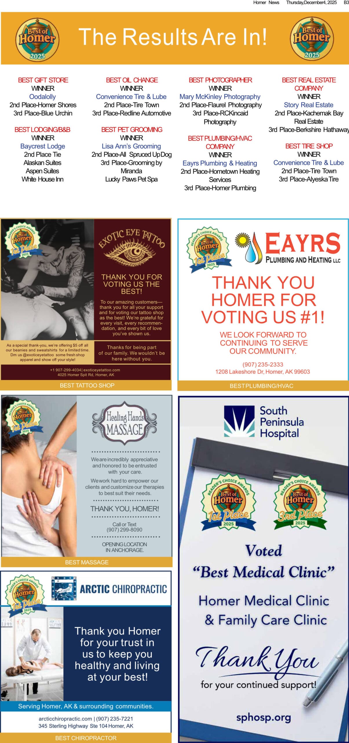Didn’t get a chance to participate this year? No worries! “Best of Homer” will return next year, providing another chance for you to nominate your local favorites for 2026.