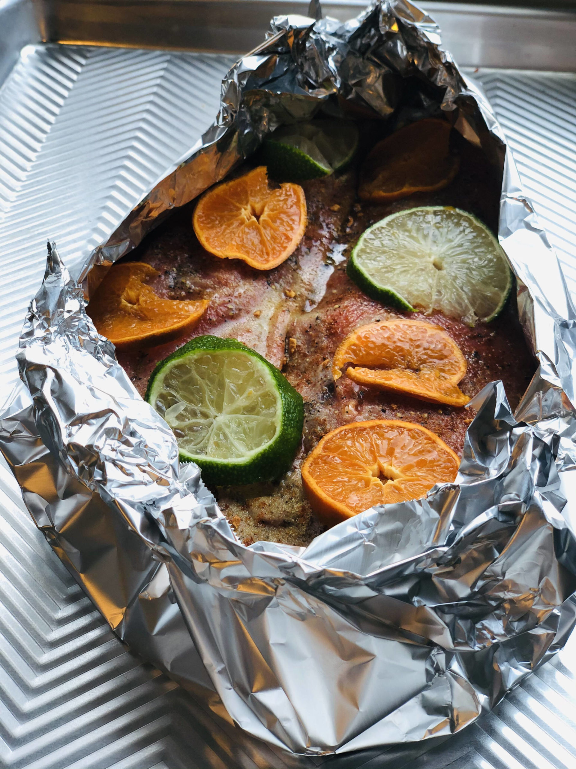 1. Preheat oven to 350 degrees. In a baking sheet covered by foil, lay out your salmon fillets and season with the salt, pepper and lime juice. Carefully drizzle the oil over the salmon, until the fillet is mostly coated with the oil.