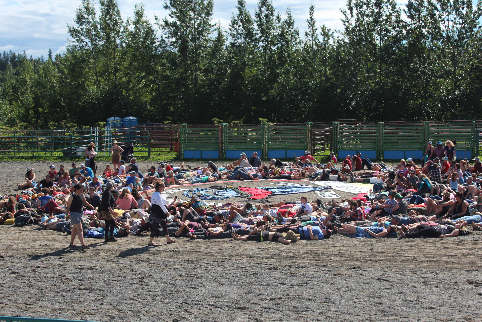Festival goers also got to participate in the annual aerial art project organized by local artist Mavis Muller. For the last eight years, Muller has designed an art piece, always having to do with fish or water. It ends up being made from arranged fabric and people from the festival who lie down on the ground around the piece for an aerial photo.