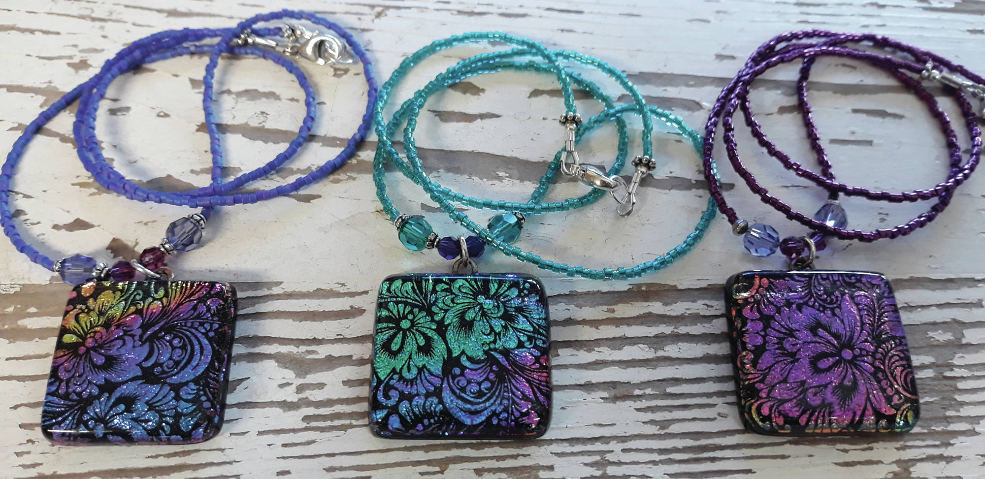 Beaded Stones, Silver and Dichroic glass by Liz Bowen