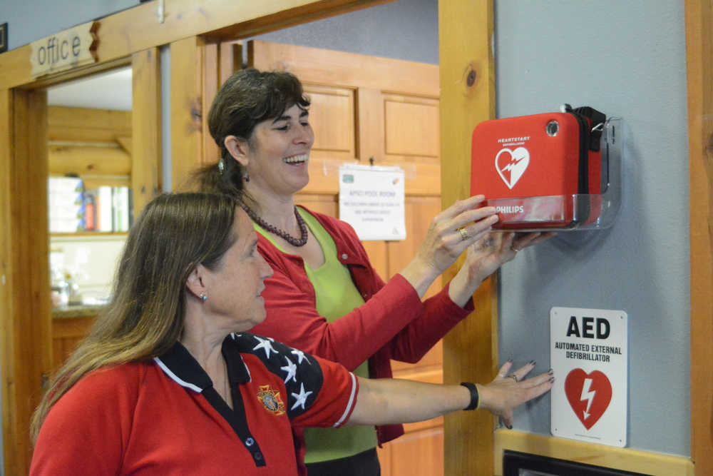 On July 5, Samantha Cunningham, Kenai Peninsula Emergency Medical Services coordinator, met with Bobby Ness, president of the senior center board of directors, to install and place a sign for the AED at the center. The small red box puts AEDs in the hands of people who might not even know cardiopulmonary resuscitation.