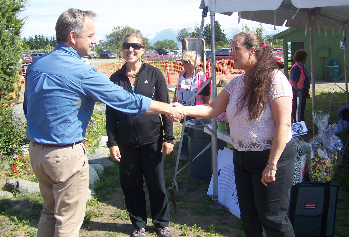 Holding a copy of the late Gov. Jay Hammond’s book, “Bush Rat Governor,” Amy Bollenbach, a one-time Democrat Party candidate for representative to the Legislature, asked Parnell if he wanted to be one of the great governors of Alaska.