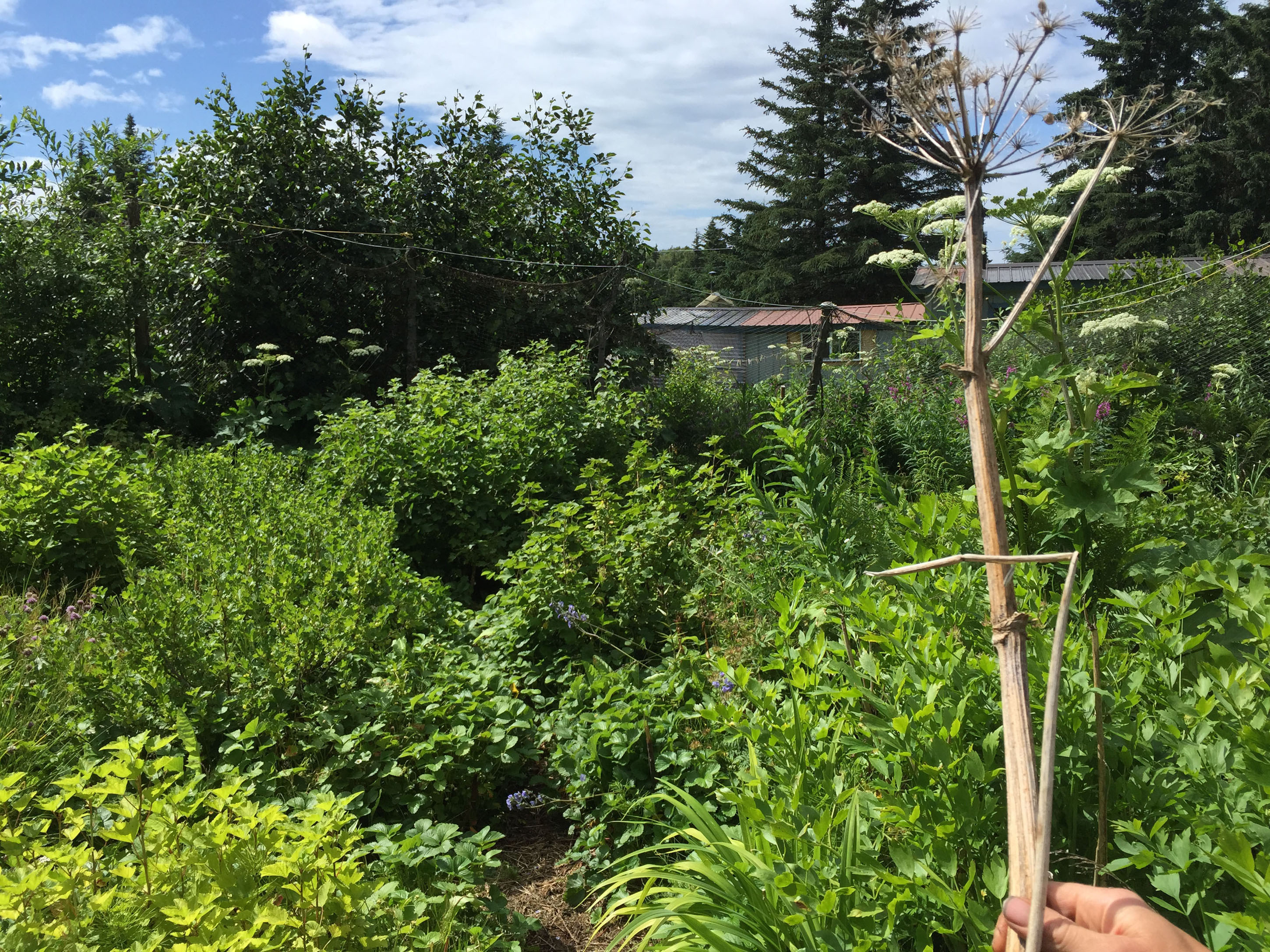 Walking into one of Ember and Shawn’s gardens, tall stalks of fireweed, pushki and willow are hard to miss growing along the edges and in-between the beds. Some modern gardeners would make an effort to keep these plants out, but not the Jackinskys; they welcome them with open arms.