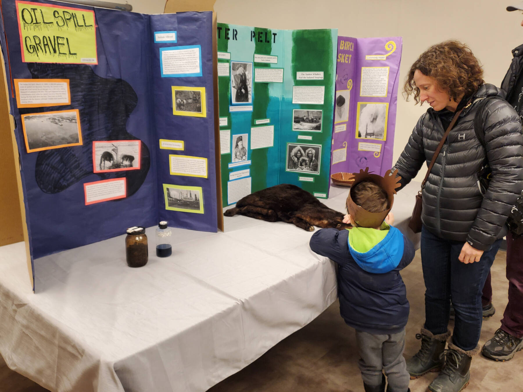 Approximately 60 students worked together in small groups to create 27 displays for the place-based exhibit. The students’ chosen items, ranging from Alaska Native artifacts to relics from Alaska’s pioneering days to more recent events, were also displayed as part of the exhibit. Pratt Museum Education and Public Programs Manager Maghan Monnig said Friday that the ages of the artifacts chosen ranged across the spectrum of Alaska history, from potentially pre-contact up to the Exxon Valdez oil spill.