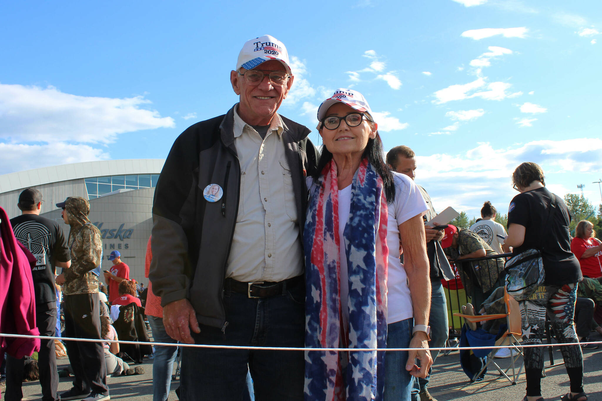 Mike and Kathy Medcoff, of Kenai, were among the thousands waiting outside the Alaska Airlines Center on Saturday. They drove up on Friday and spent the night in Anchorage to ensure they got a good spot in line, Kathy said. As a conservative, she said it’s important to her that she shows support for conservative candidates.