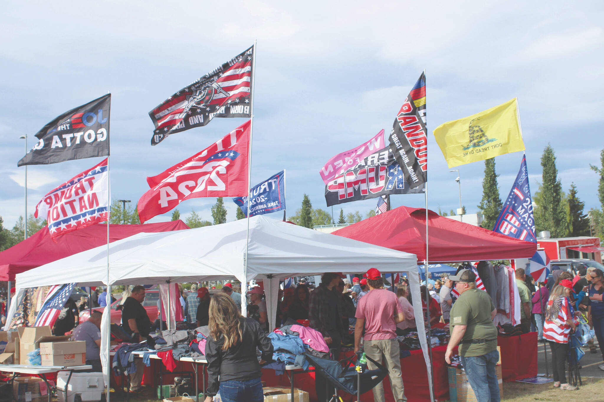 She flew to Anchorage from Michigan for the event. She said she and the merch business follow Trump on the road — before Anchorage, they were in Illinois. She said Anchorage is the furthest they’ve traveled.