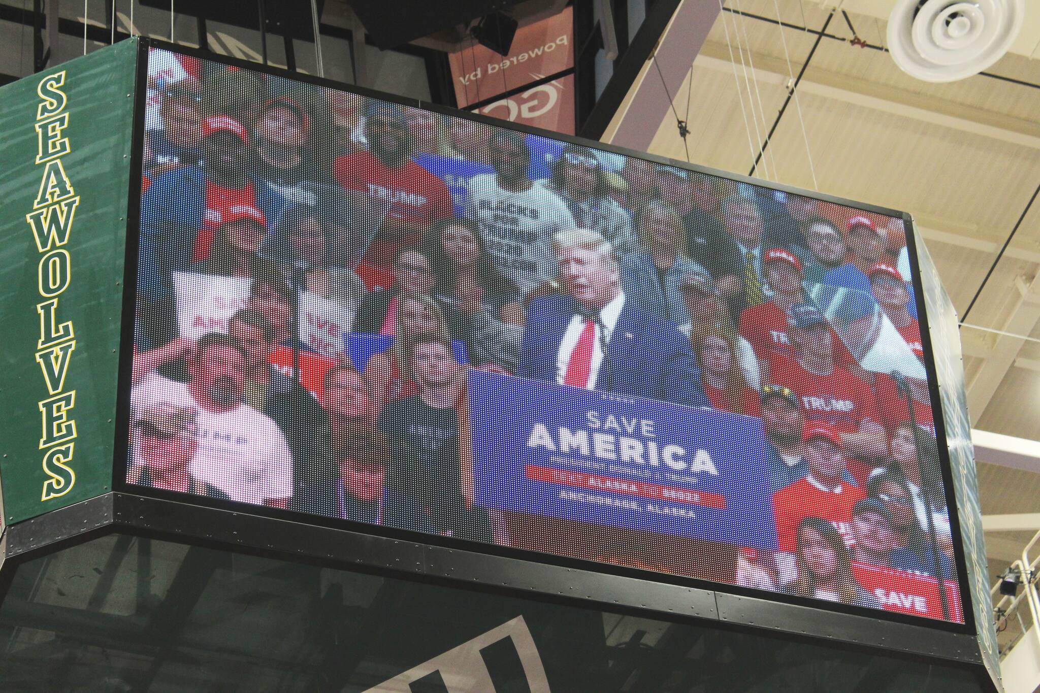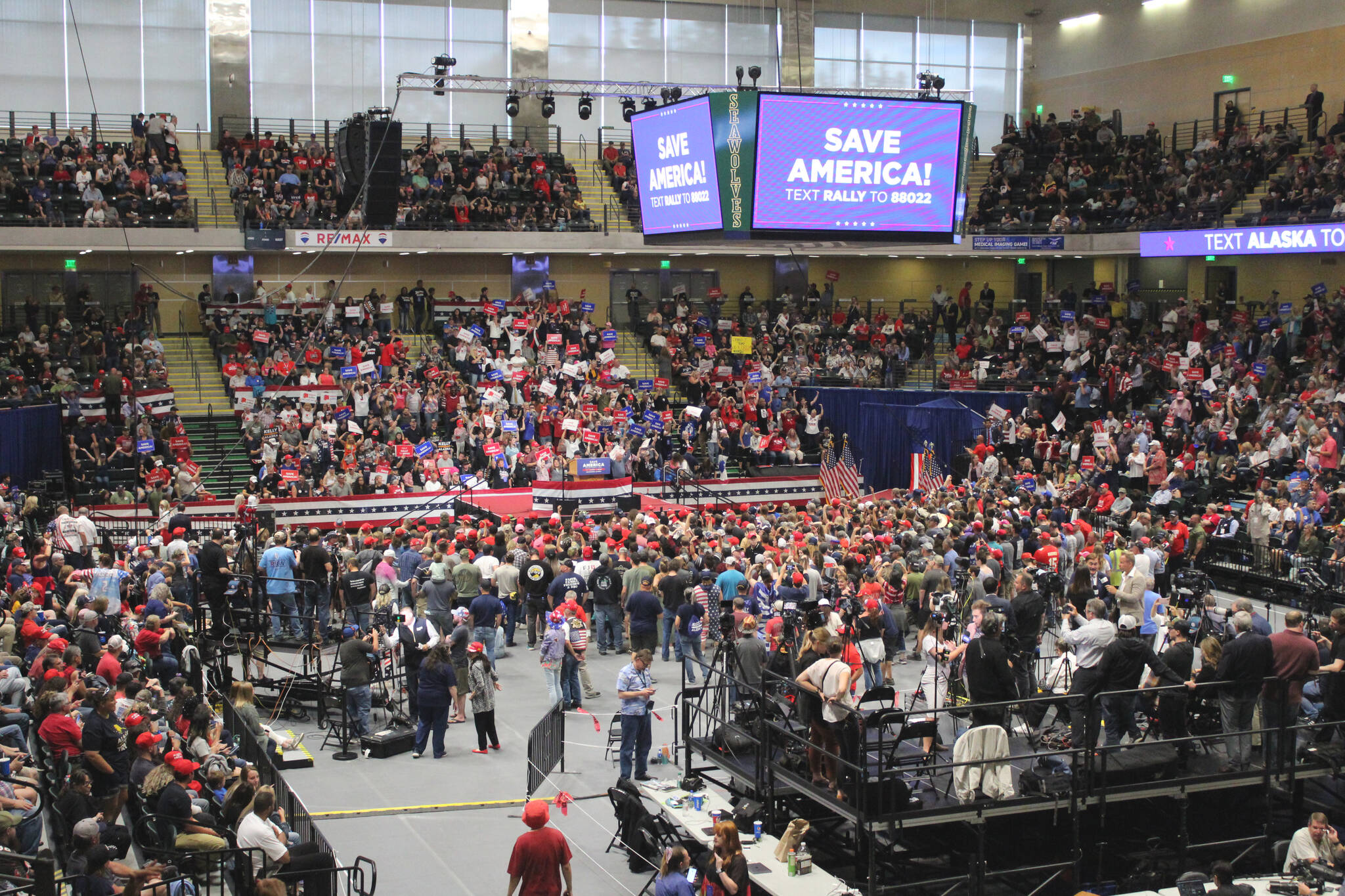 Hours before Trump, Palin and Tshibaka took the stage, rally attendees could be found queuing up outside the doors to the Alaska Airlines Center. Some got in line as early as Friday, while others said they stayed in Anchorage overnight to get a good spot the following day.