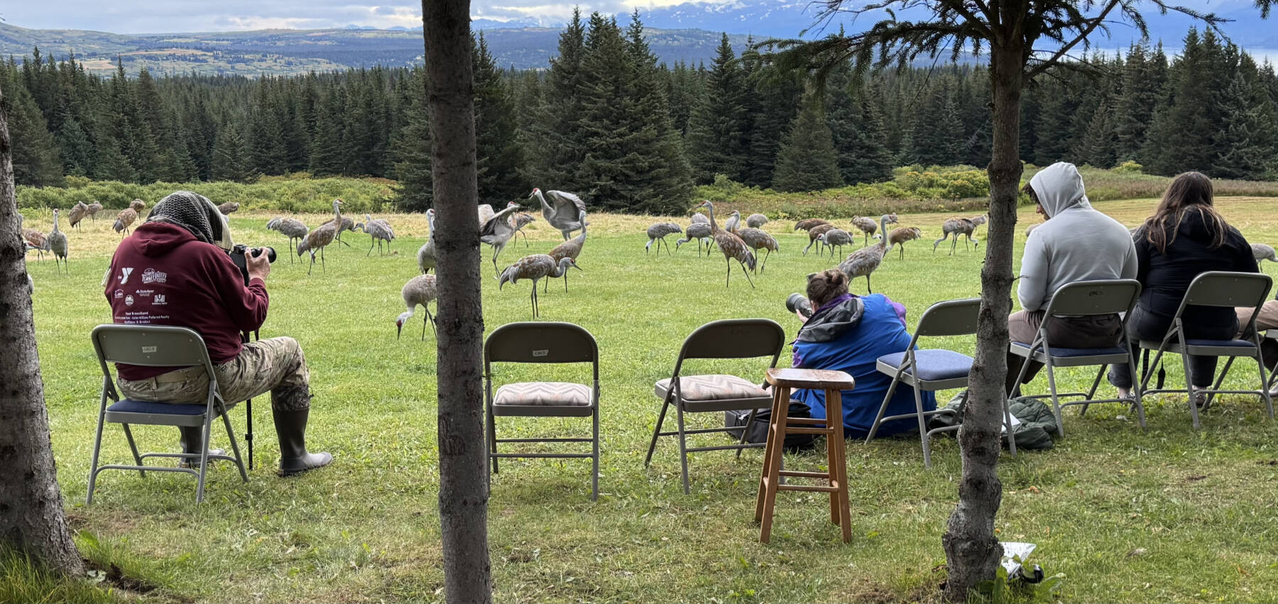As part of the crane watch season, KCW and Inspiration Ridge Preserve — both affiliated with CACS — hosted 11 Sandhill Crane Tours this summer, between Aug. 21 and Sept. 5. Provided annually to registered community members, the tours provide an opportunity for visitors to view and photograph cranes and learn about their natural history and lives in the Kachemak Bay area.