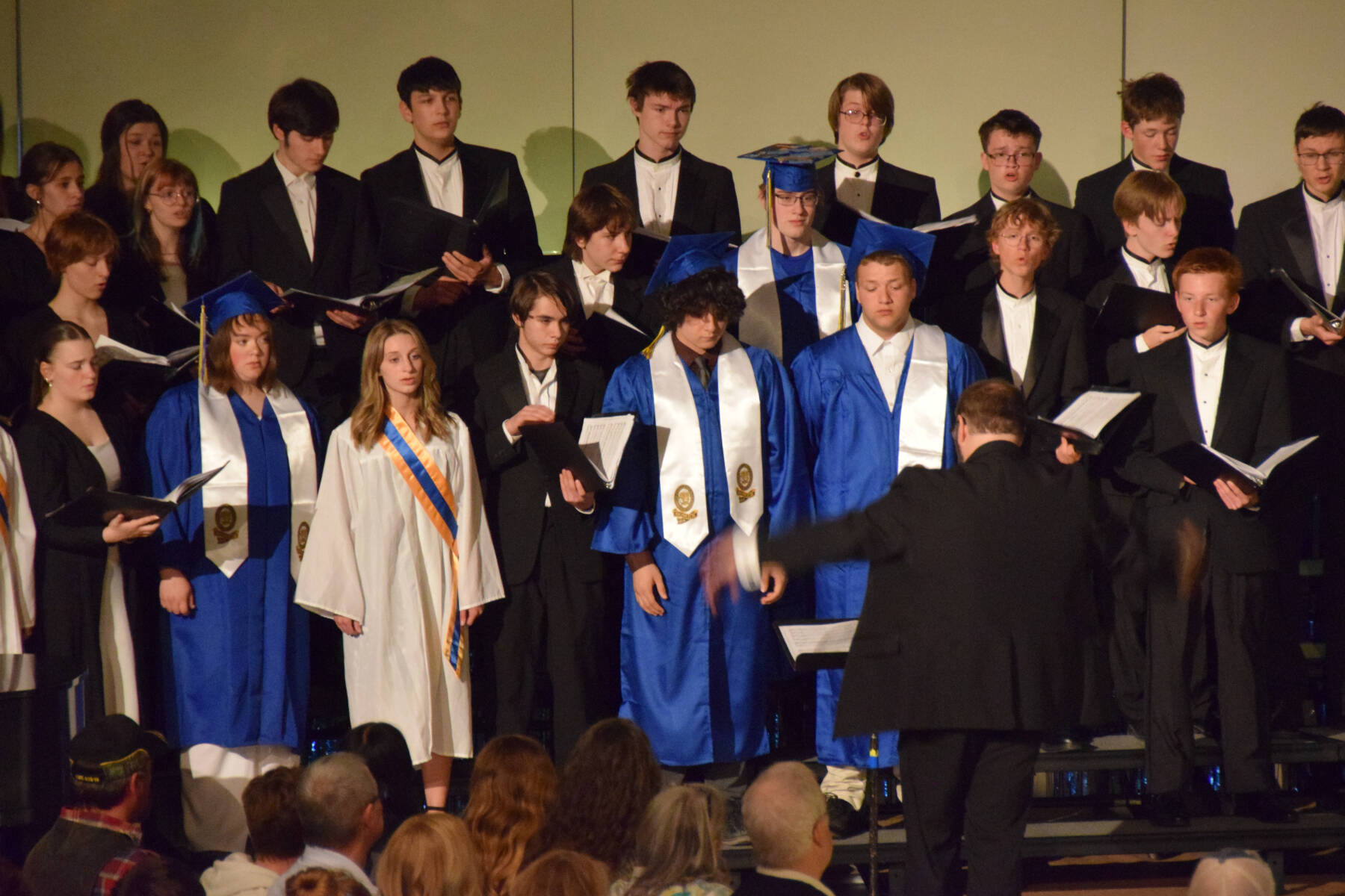 The valedictorian and salutatorian address was delivered by seniors Brightly Thoning and Beatrix McDonough. Thoning completed her time at Homer High with a GPA of 4.336 and McDonough with a GPA of 4.318, a merit earned through their completion of multiple Advanced Placement classes.