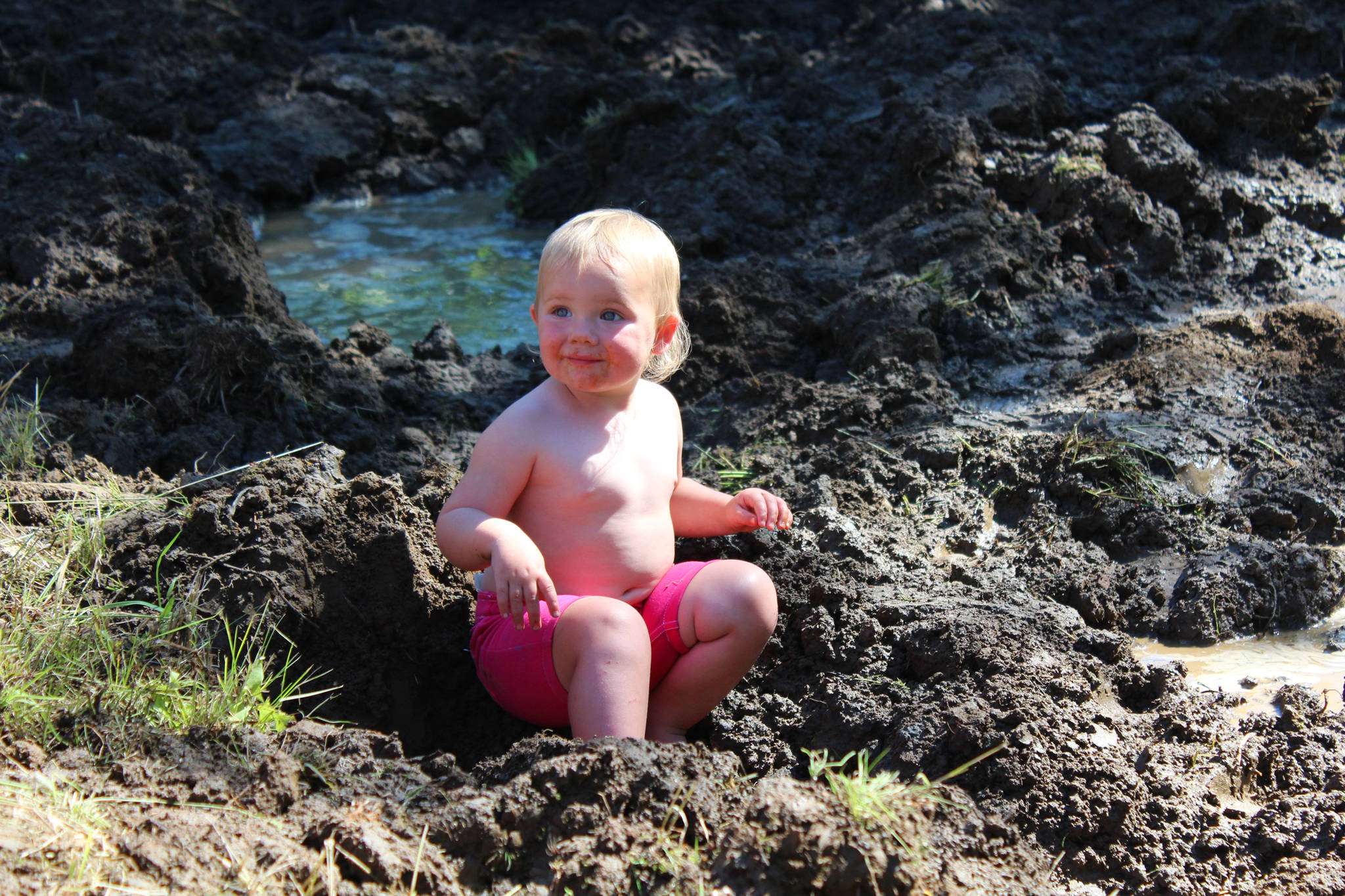 Under the watchful eyes of their parents Saturday, children slung handfuls of mud, jumped headlong into deep puddles of muddy water, and slid gleefully down a makeshift mud slide.