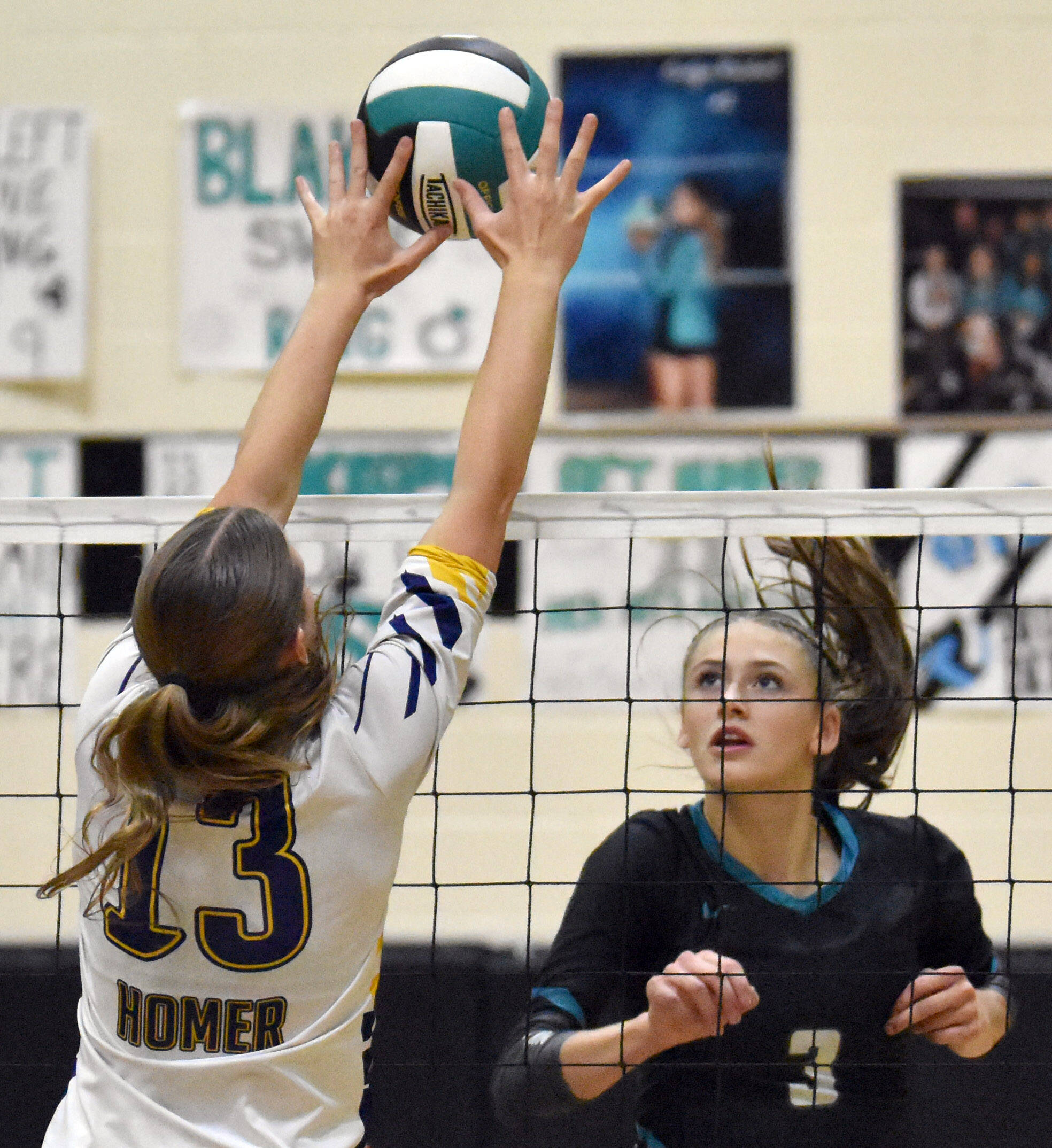 “Our serve-receive was excellent,” Homer head coach Brenna Dornellas said. “Our serves in the first set, we missed only one. Coverage was insane. Blocks were up.
