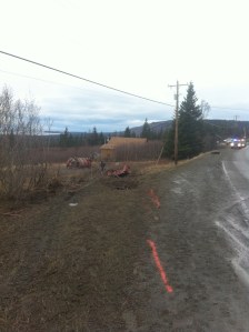 In this photo provided by Alaska State Troopers of a fatal truck crash today, drilling mud tanks can be seen in a field on the south side of the road near Mile 9.5 East End Road.-Photo provided, Alaska State Troopers