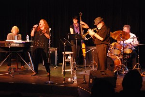 The Karen Strid Quartet Plus 2 performs Thursday and Friday at Pier One Theatre. From left are Karen Strid, who lives in Homer; Brenda Vulgamore-Hune, vocals, of Anchorage; Heidi Herbert-Lovern, bass, of Anchorage; Dale Curtis, trumpet, who lives in Ketchikan; and Curtis Bates, drums, who lives in Soldotna. Not pictured with the group is Jim Davis, who plays the sax and lives in Anchorage.