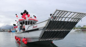Decorated with red, black and white balloons, the M/V Sanoah was easy to spot in the Homer Harbor…