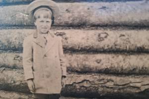 Emmett Krefting, age 6-7, at the Wible mining camping in 1907-07, about the time he first met King David Thurman. (Photo from the cover of Krefting’s memoir, Alaska’s Sourdough Kid)