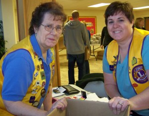 Fran Van Sandt, left, and Amy Shumaker organize the packing of food boxes for the 2012 Lions Club Thanksgiving Basket Program. -Homer News file photo
