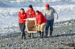 The Alaska SeaLife Center released a male harbor seal named Hubbard back into the wild from Bishop’s Beach…