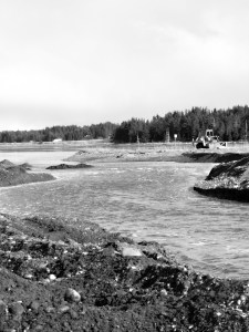 A bulldozer sits by a new mouth of Beluga Slough at Bishop’s Beach last Thursday afternoon. Landowners at…