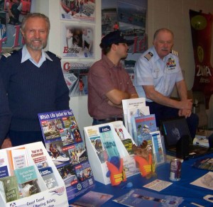 Tips for staying safe and well on the water were offered at the 2011 Health Fair by the U.S. Coast Guard Auxiliary Homer Flotilla, represented by, from left, Dennis Thaute, Alex Stuart and Dan Cole. The U.S. Coast Guard Auxiliary will be represented again this year.-Photo by McKibben Jackinsky, Homer News